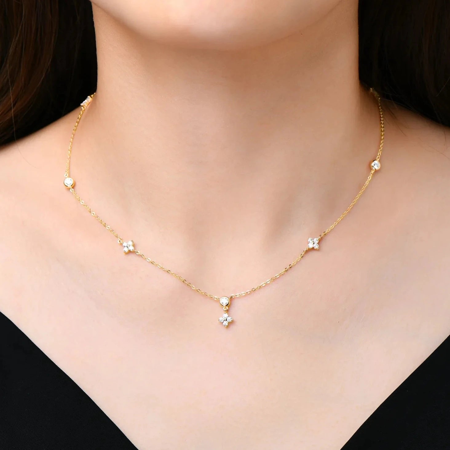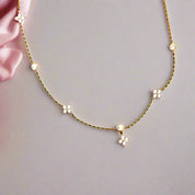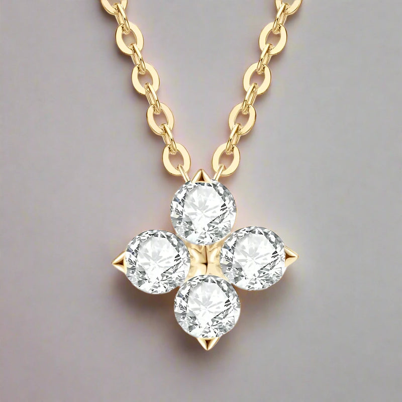 Add a touch of elegance to your outfit with our Round Cut Diamond Flower Pendant Necklace! This eye-catching piece showcases a stunning flower design adorned with sparkling round moissanite stones. Crafted from high quality 925 silver dipped 5x in 18k gold, this affordable necklace is perfect for everyday wear or special occasions.