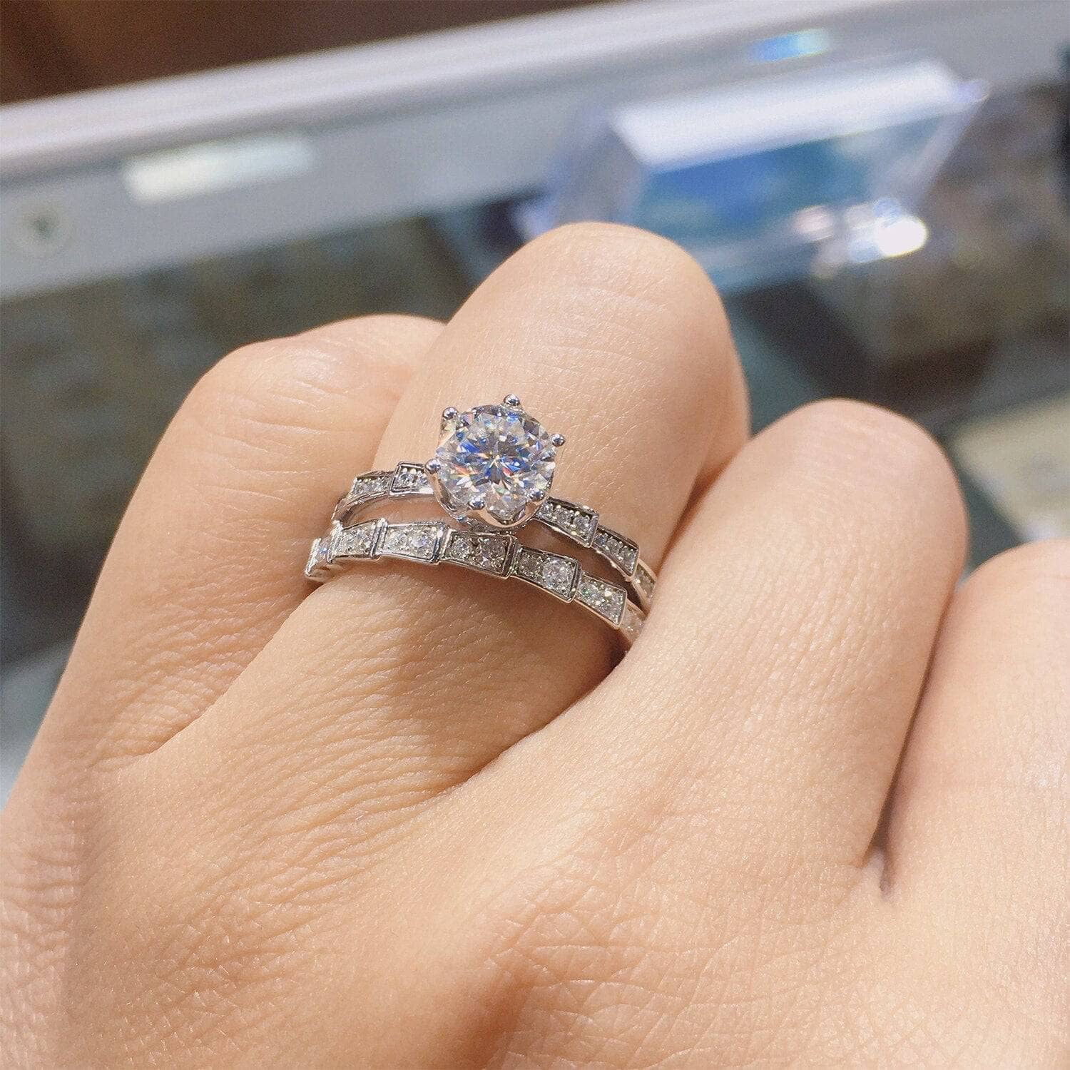 Embedding diamonds by handcraft. Exquisite design made perfect for an engagement ring, wedding ring, promise ring, bridal ring set, anniversary ring, couples ring, and more. Wonderful gifts for birthdays, Mother's Day, Valentine's Day, Thanksgiving, Christmas, and all other occasions.