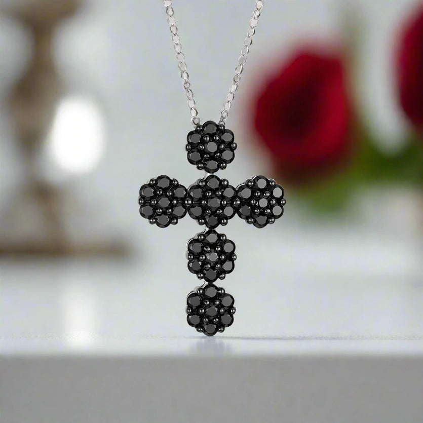 Round-cut Black Spinel Cross Goth Necklace