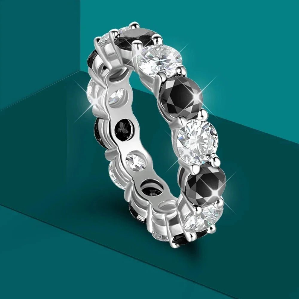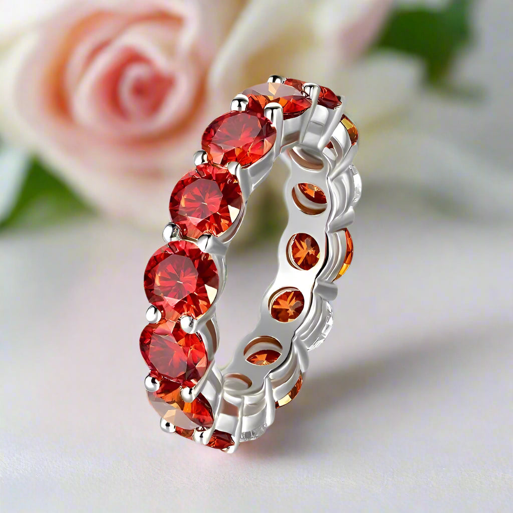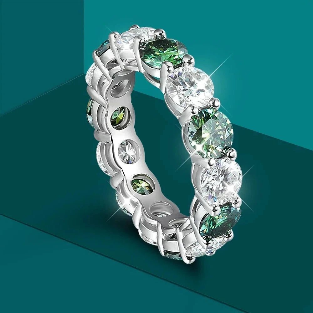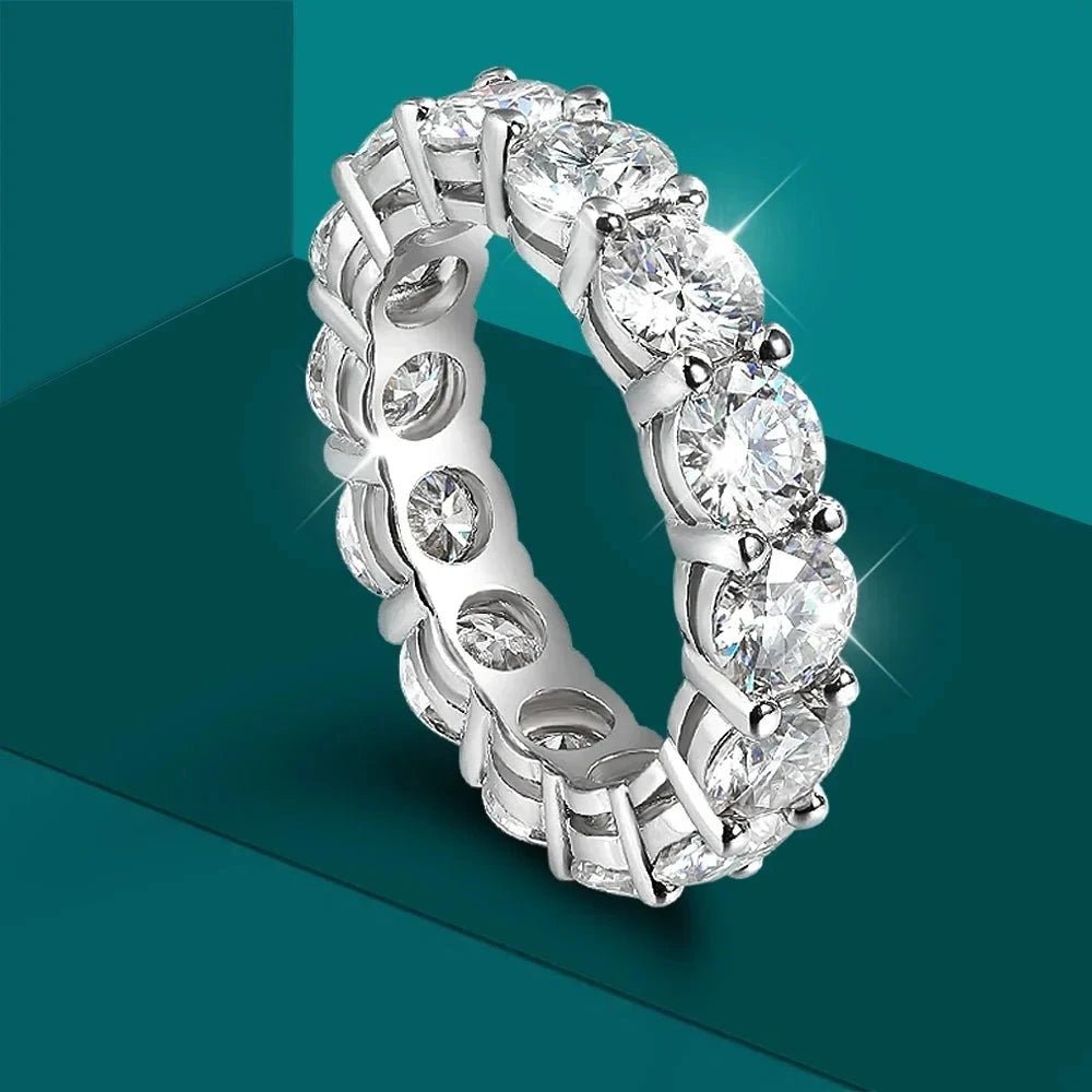 Say "I do" in style with our Round Certified Moissanite Eternity Wedding Band. This breathtaking piece boasts a row of round cut moissanite stones that wrap around your finger in a continuous sparkle. Made with high-quality materials, including 925 silver dipped 5x in 18k gold, this band is a true showstopper at an unbeatable price.