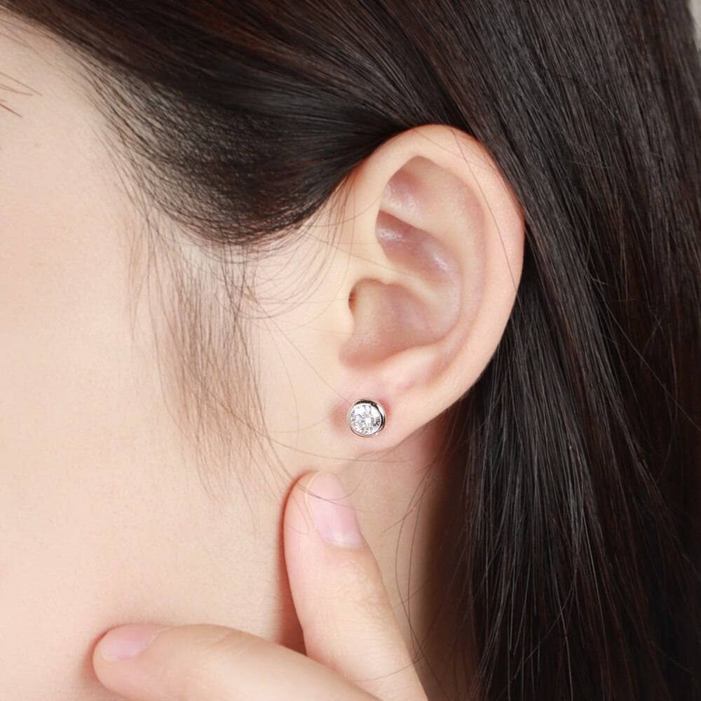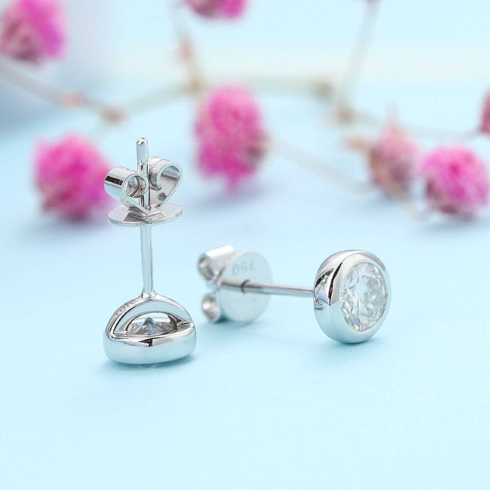 Looking for a gorgeous pair of earrings that won't break the bank? Look no further than these Solid White Gold 5mm Diamond Stud Bubble Earrings by Black Diamonds New York. Made with top-notch 14k white gold and featuring round-cut moissanite stones in a bezel setting, these earrings are sure to make a statement. Treat yourself to a stunning accessory that shines bright.