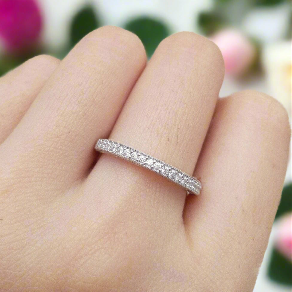 Experience the ultimate in luxurious style with our handcrafted Stackable Round Diamond Eternity Wedding Band. Made from only the highest quality materials, each band is carefully crafted to perfection to achieve an unparalleled level of brilliance that will catch the light and dazzle like a natural diamond.