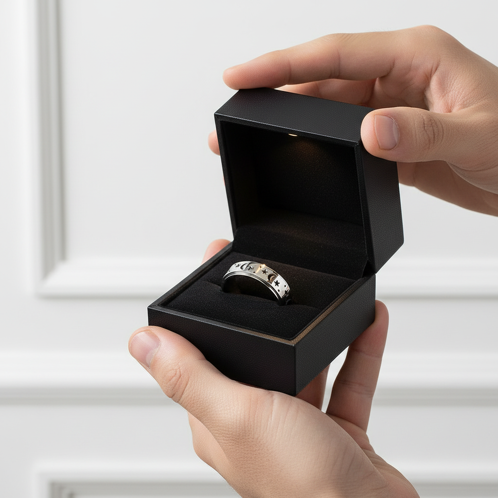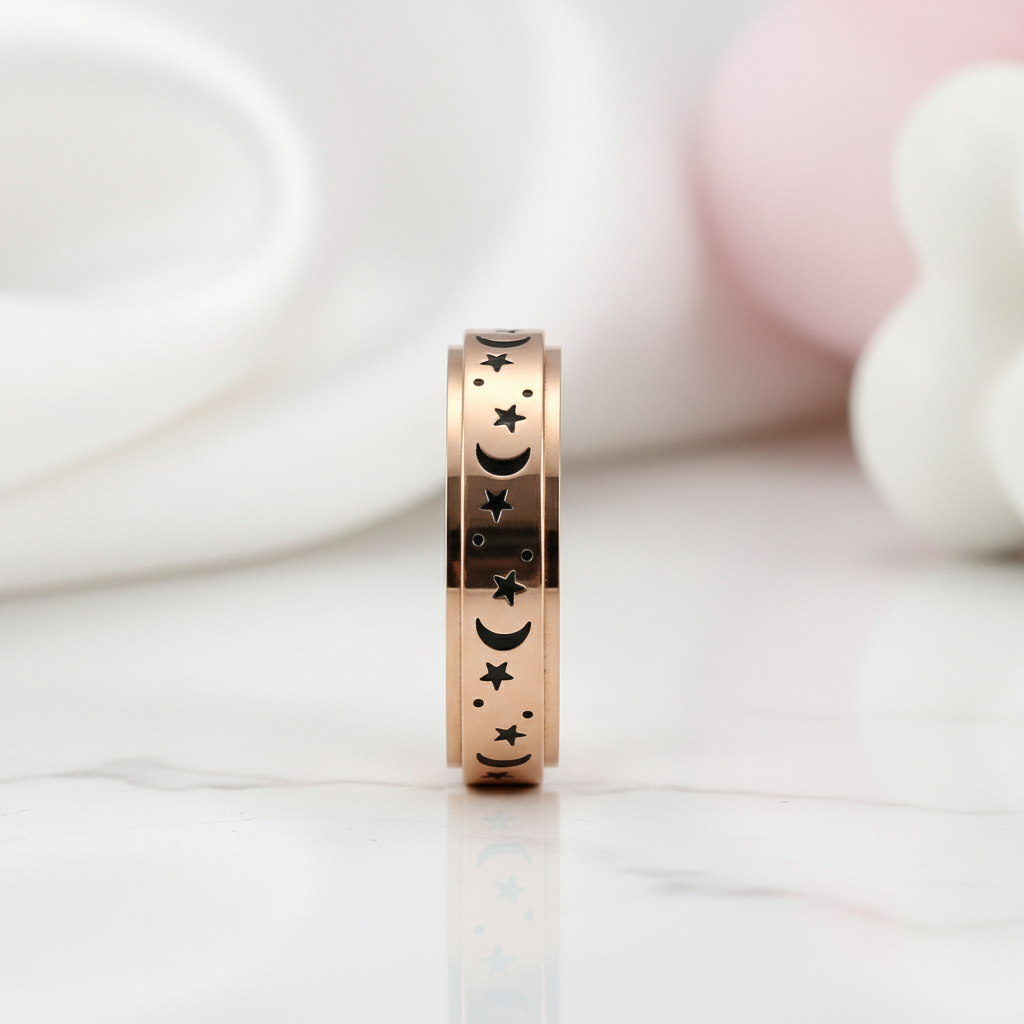 Star and Moon Titanium Steel Rotatable Luminous Ring