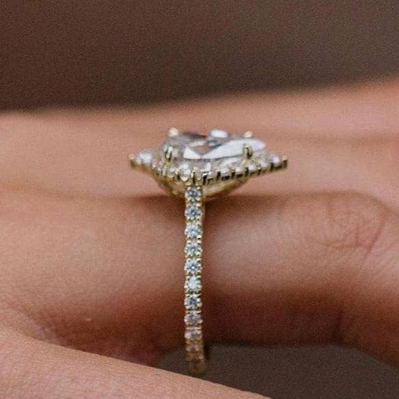 Stunning Yellow Gold Halo Pear Cut Elegant Engagement Ring