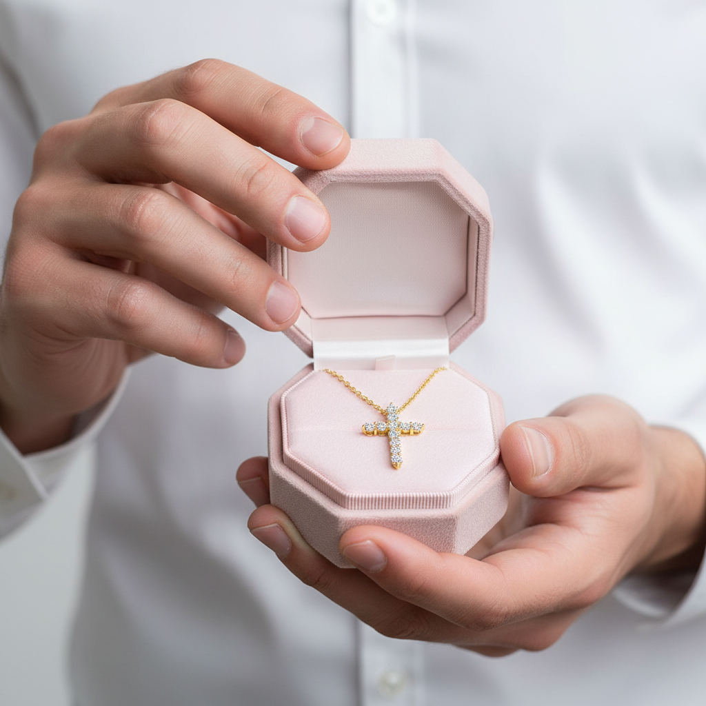 Crafted from premium materials, this Trendy Cross Diamond Necklace is meticulously handmade to deliver outstanding brilliance and shimmer, rivaling that of a natural diamond.