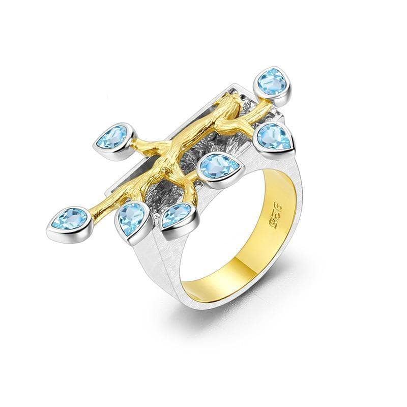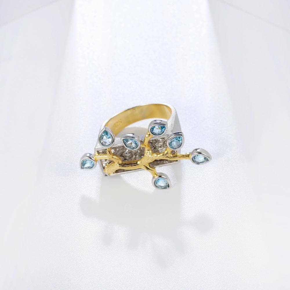 Two Tone Madagascar Forest Natural Swiss Blue Topaz Ring