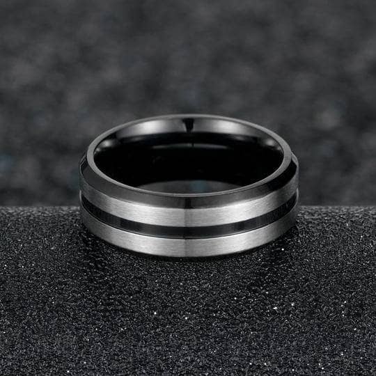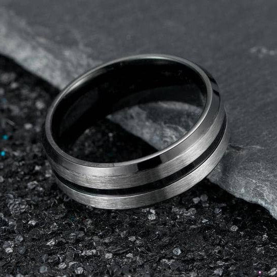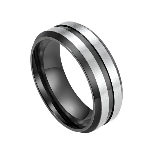 Show your commitment with this two-tone stainless steel men’s wedding band, featuring a sleek brushed finish for modern sophistication. Durable, stylish, and affordable — perfect for daily wear and special occasions alike.