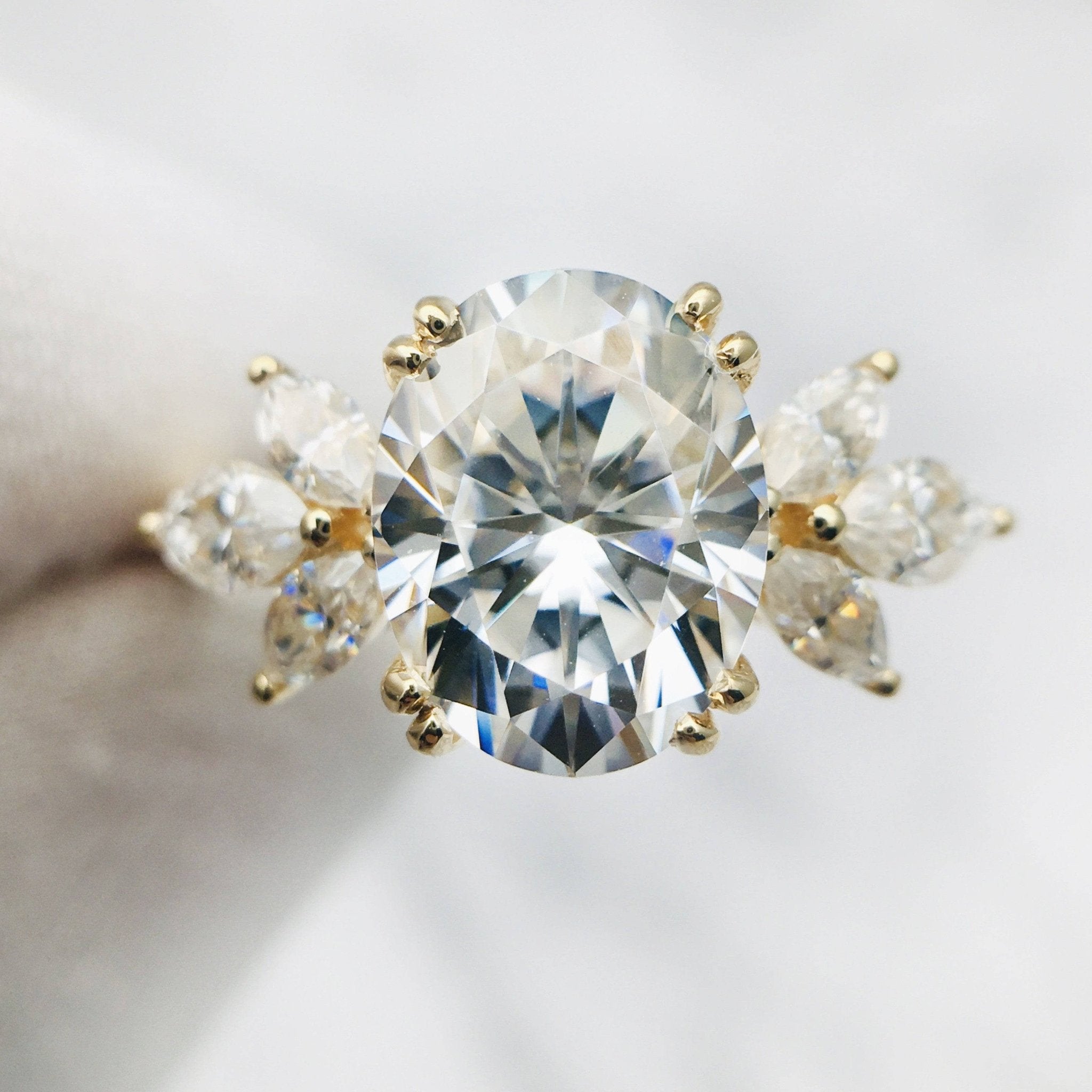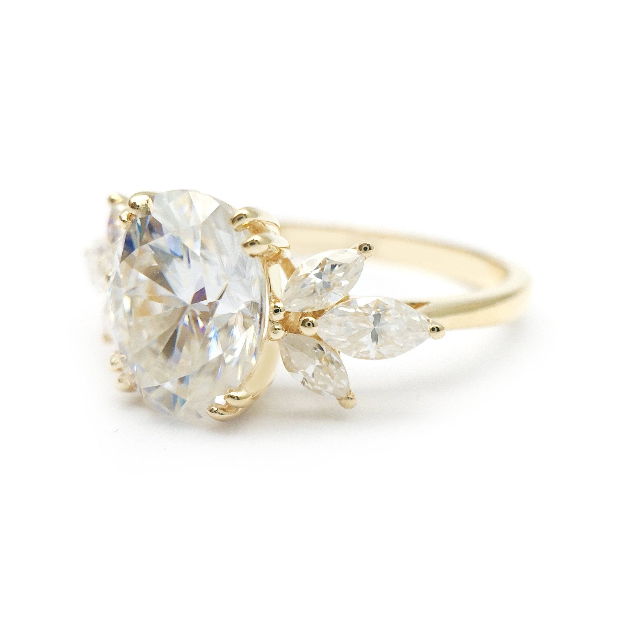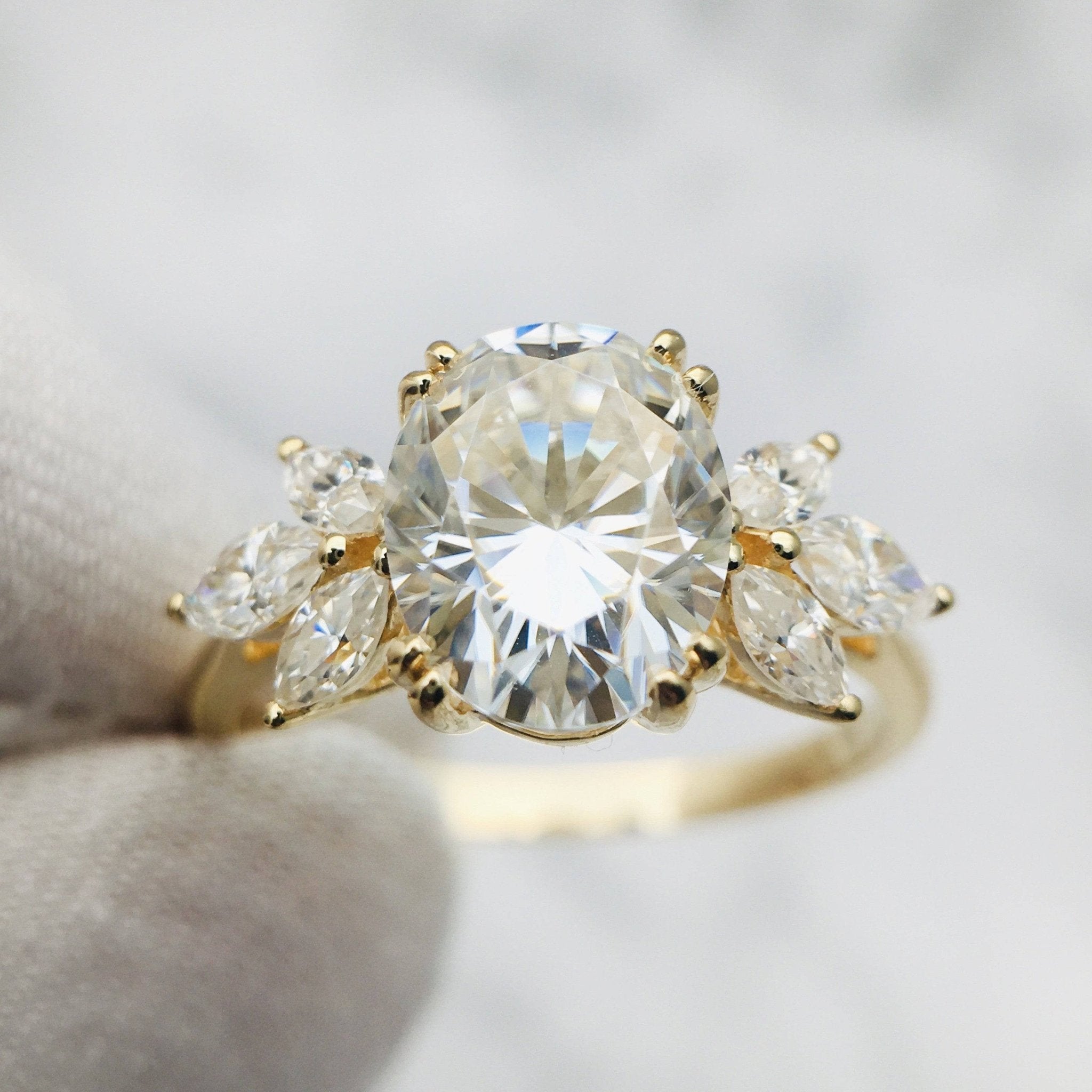 Unique Oval Cut Certified Moissanite Yellow Gold Minimalist Engagement Ring