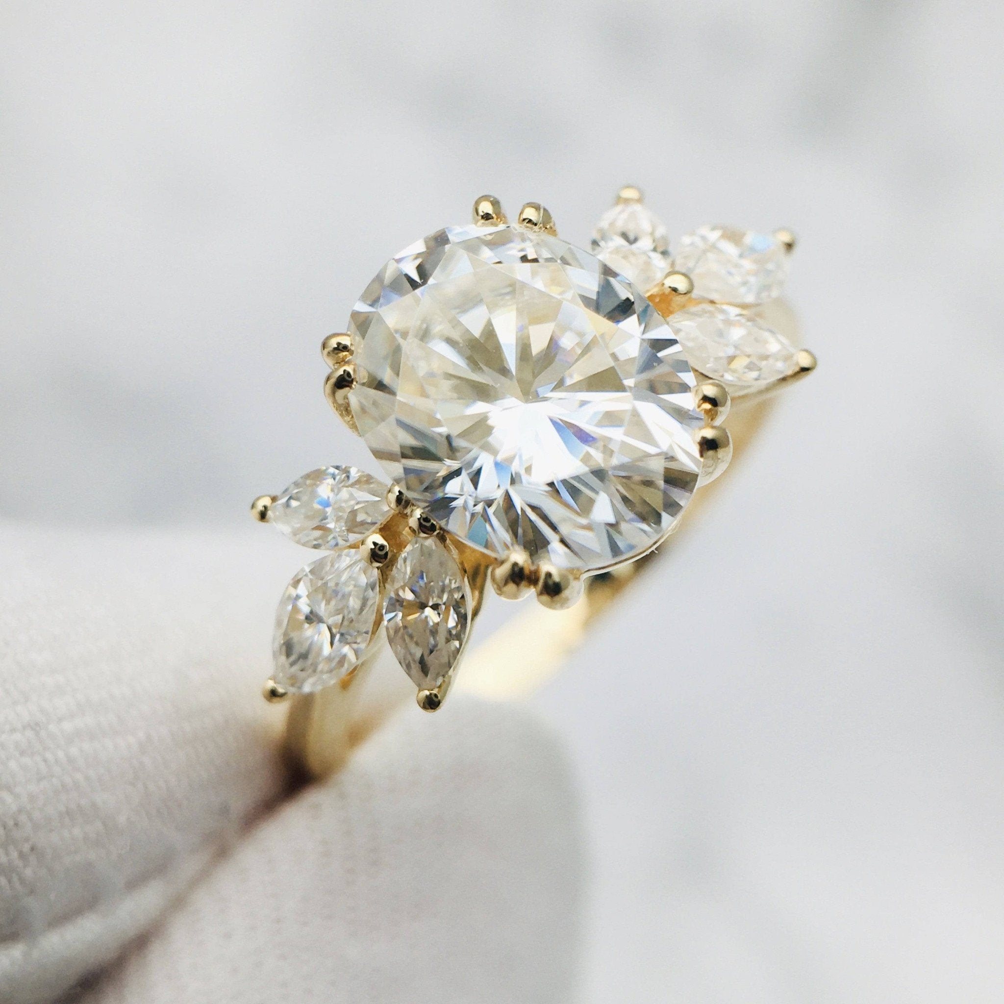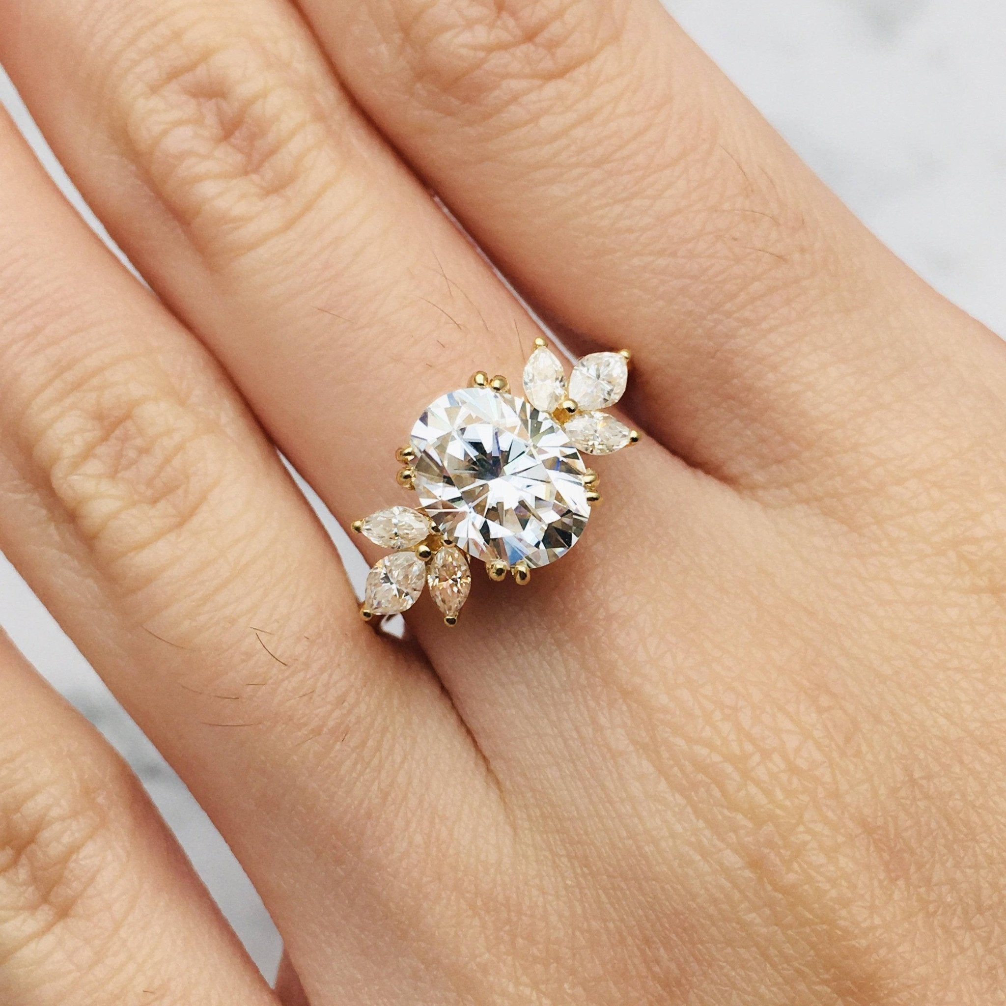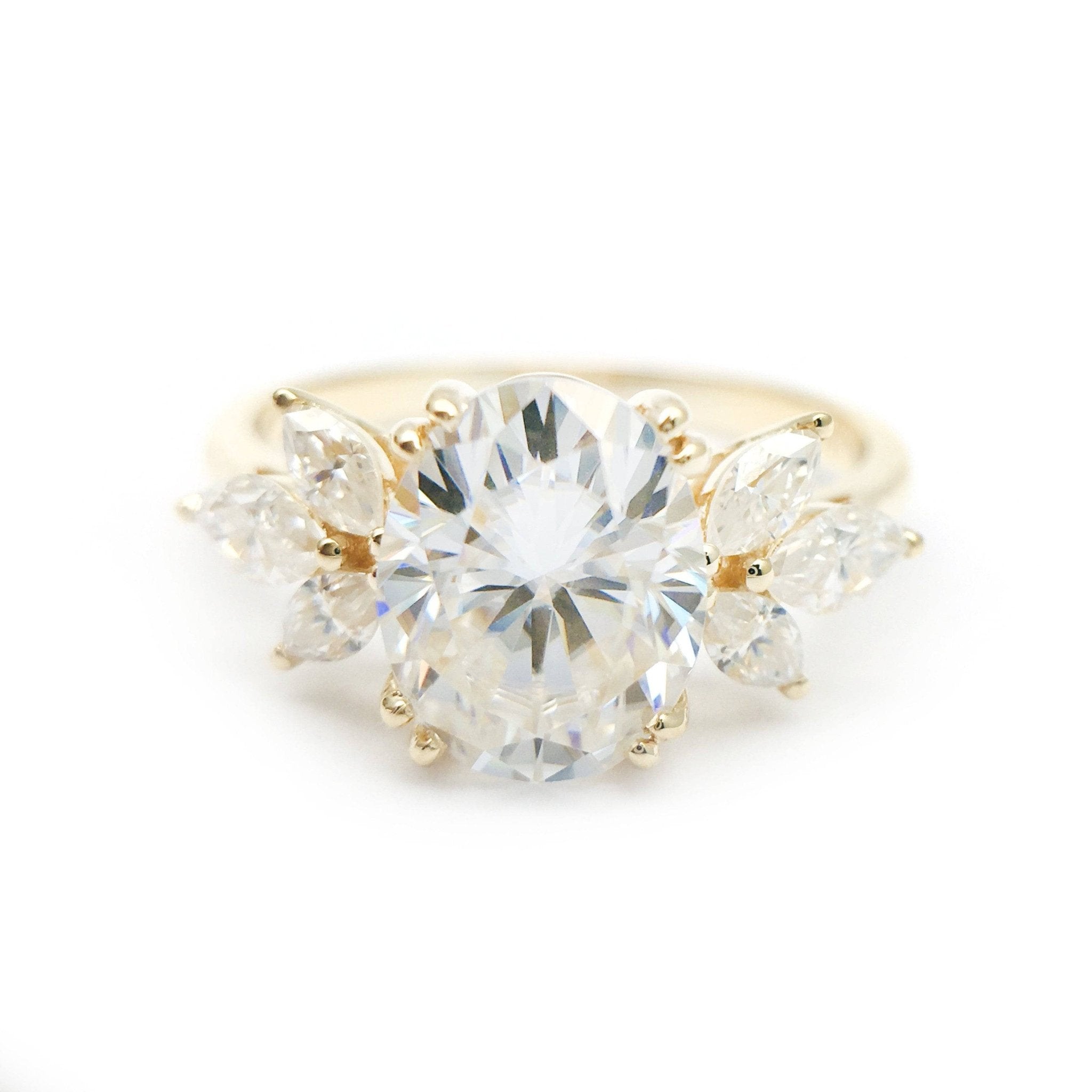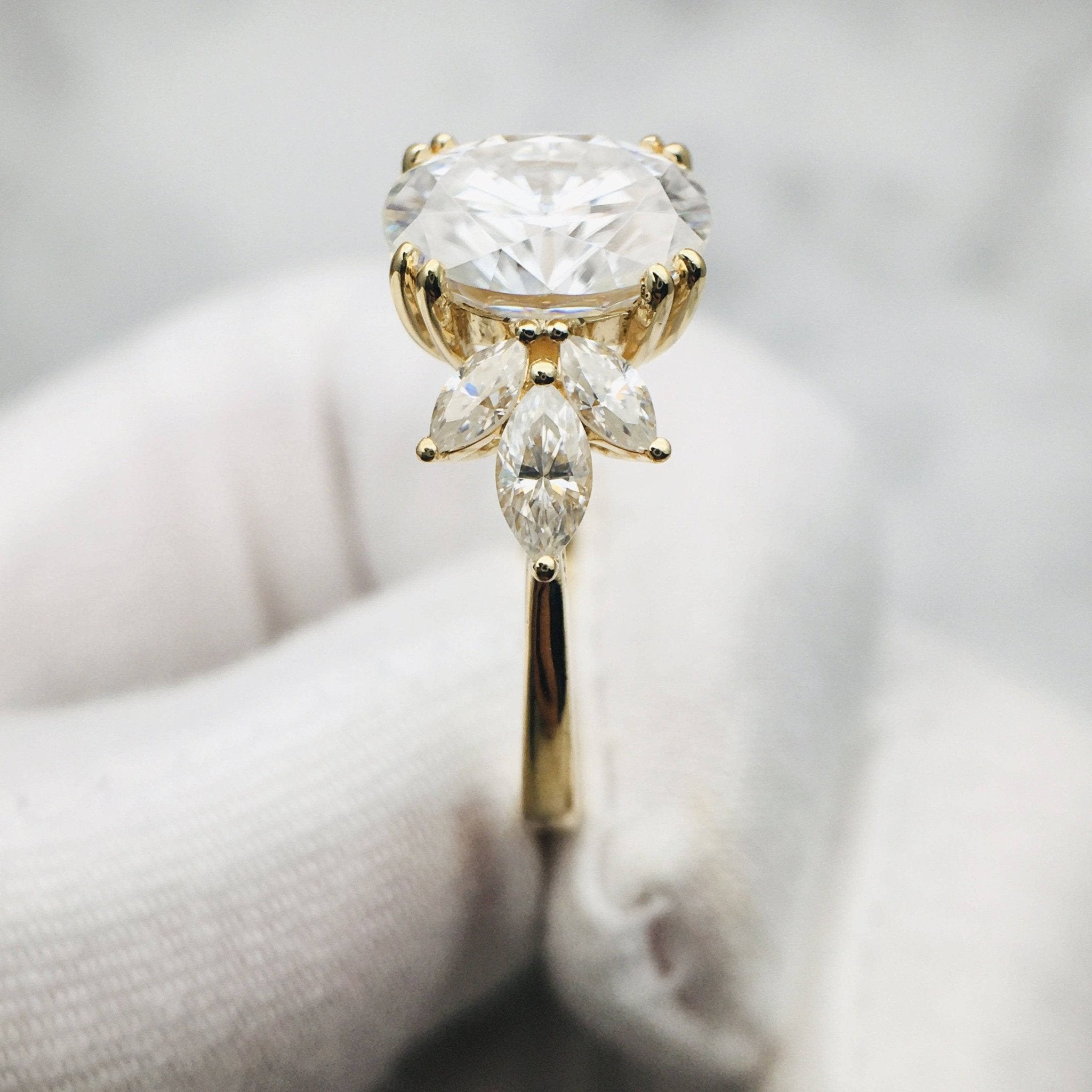 Unique Oval Cut Certified Moissanite Yellow Gold Minimalist Engagement Ring