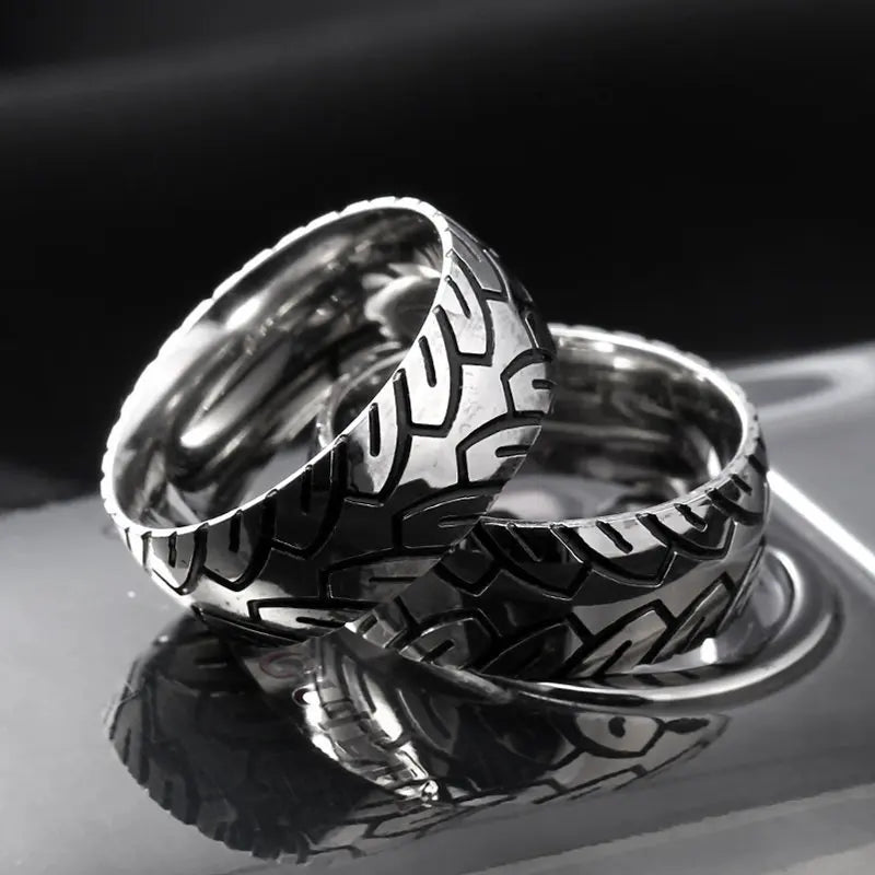 Vintage 8mm Unisex Wedding Band with Car Tire Pattern