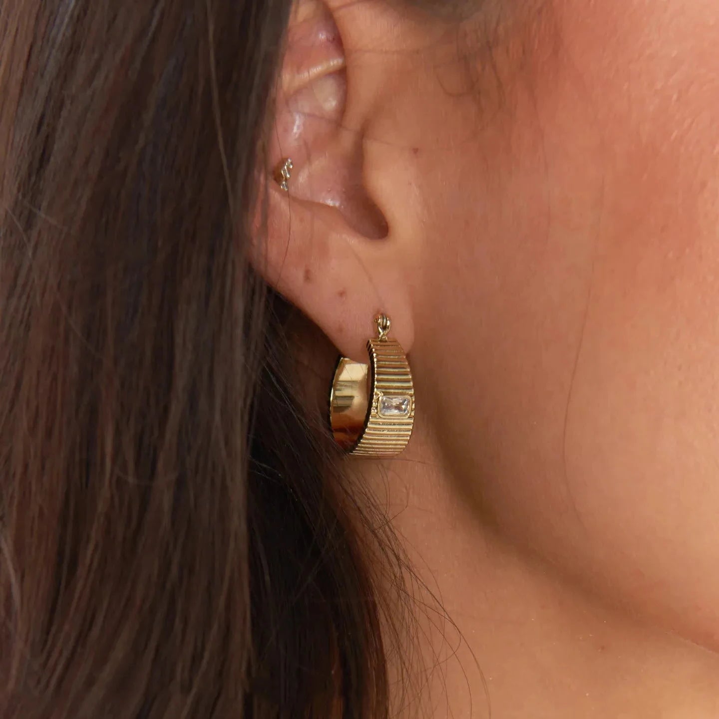 Elevate your style with these Vintage Chunky Women's Hoop Earrings featuring a sparkling Diamond Alternative. Dipped five times in 18k gold, they offer lasting shine and lightweight comfort for all-day wear. Perfect for adding a touch of vintage elegance to any look.