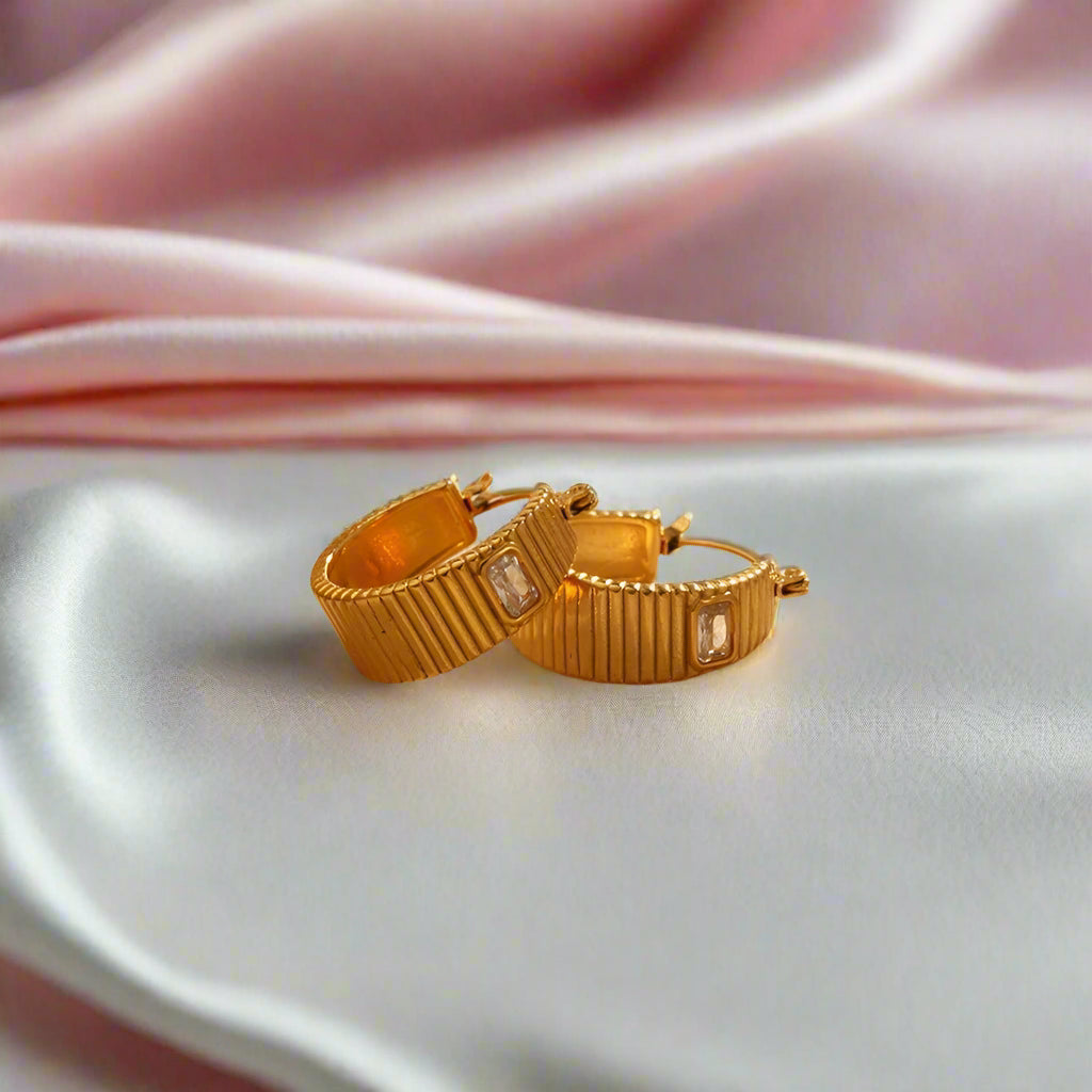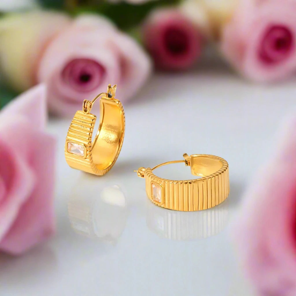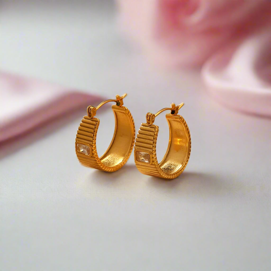 Vintage Chunky Women's Hoop Earrings with Diamond