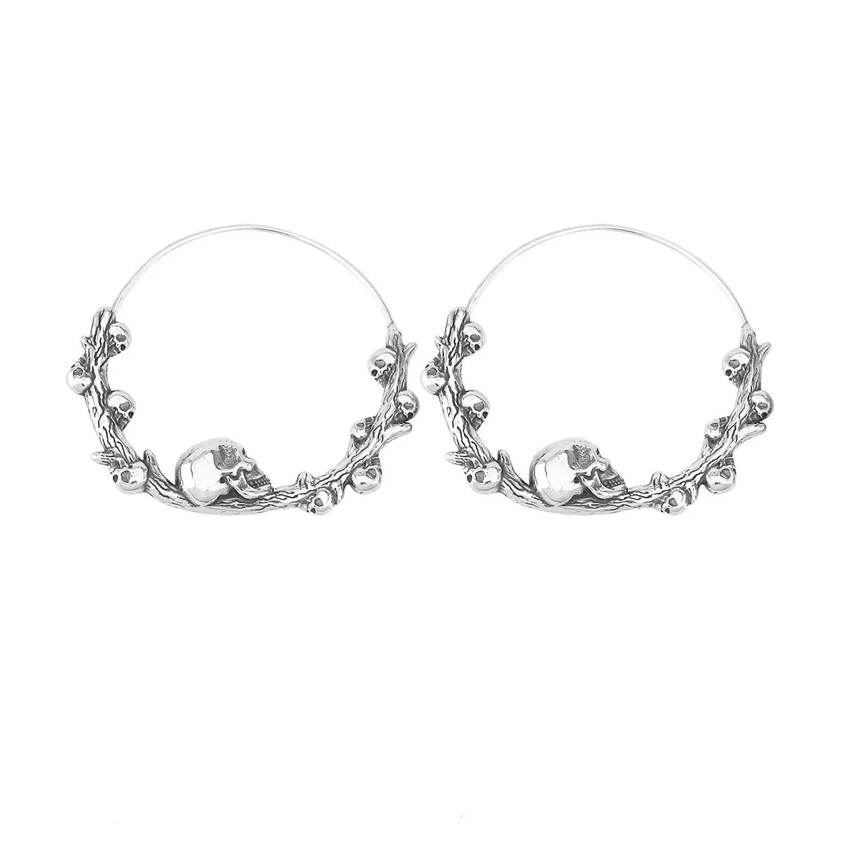 Vintage Stainless Steel Viking Skull Hoop Earrings
