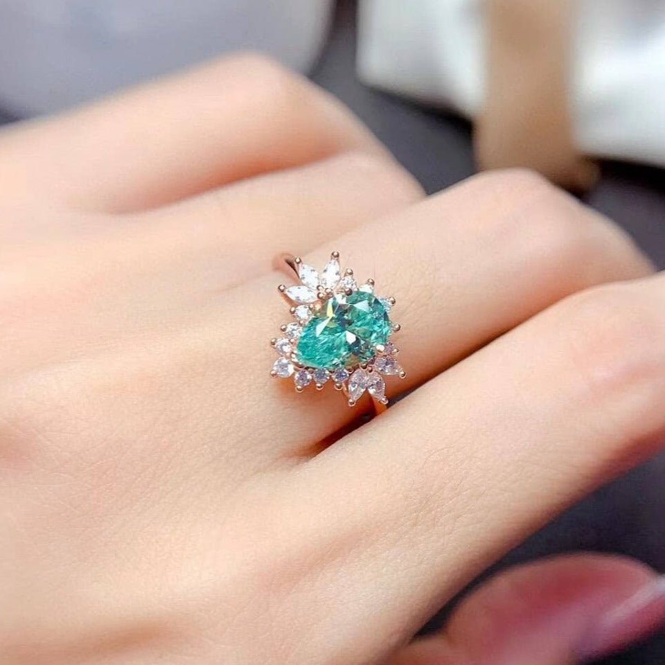 Experience the elegance of the Water Drop Style 1.5ct Green Diamond Ring, crafted from premium materials. Expertly handmade to deliver stunning brilliance, this ring shines with the captivating sparkle of a diamond.