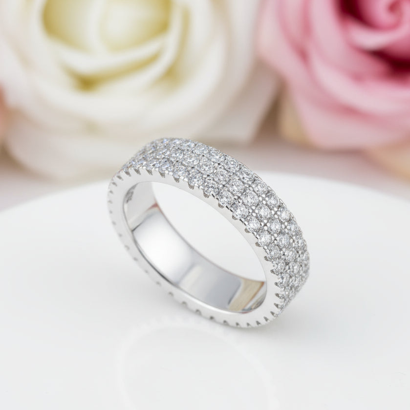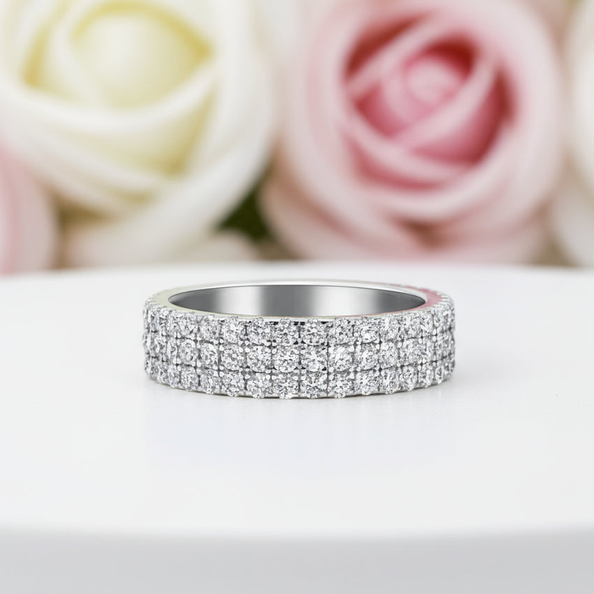White Gold Pave Diamond Sapphire Ring Band