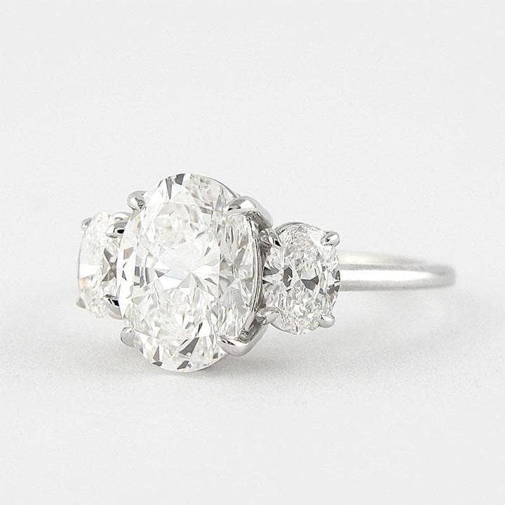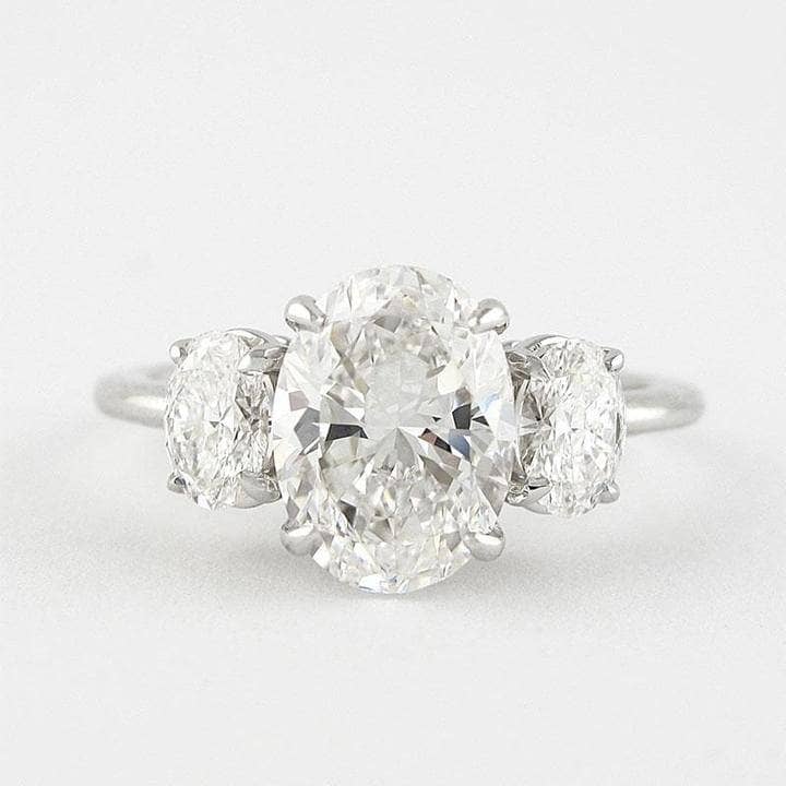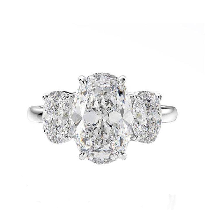 White Gold White Sapphire Oval Cut Three Stone Engagement Ring