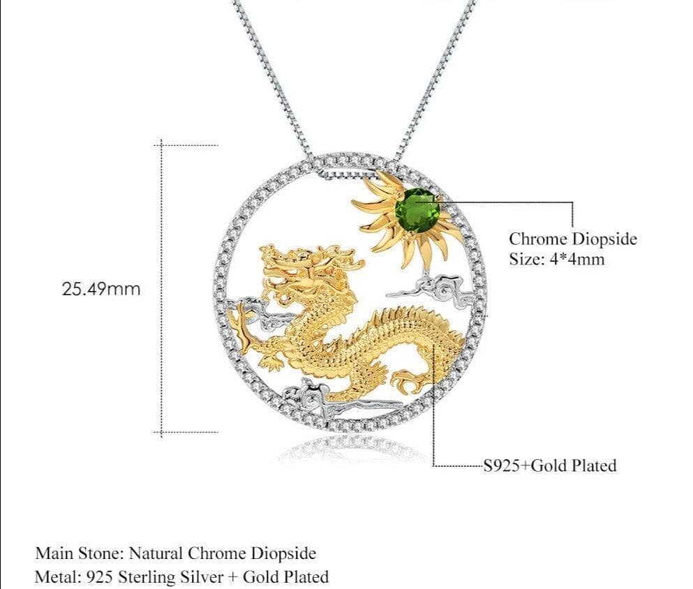 Year Of The Dragon-Natural Chrome Diopside Handmade Flying Dragon Necklace