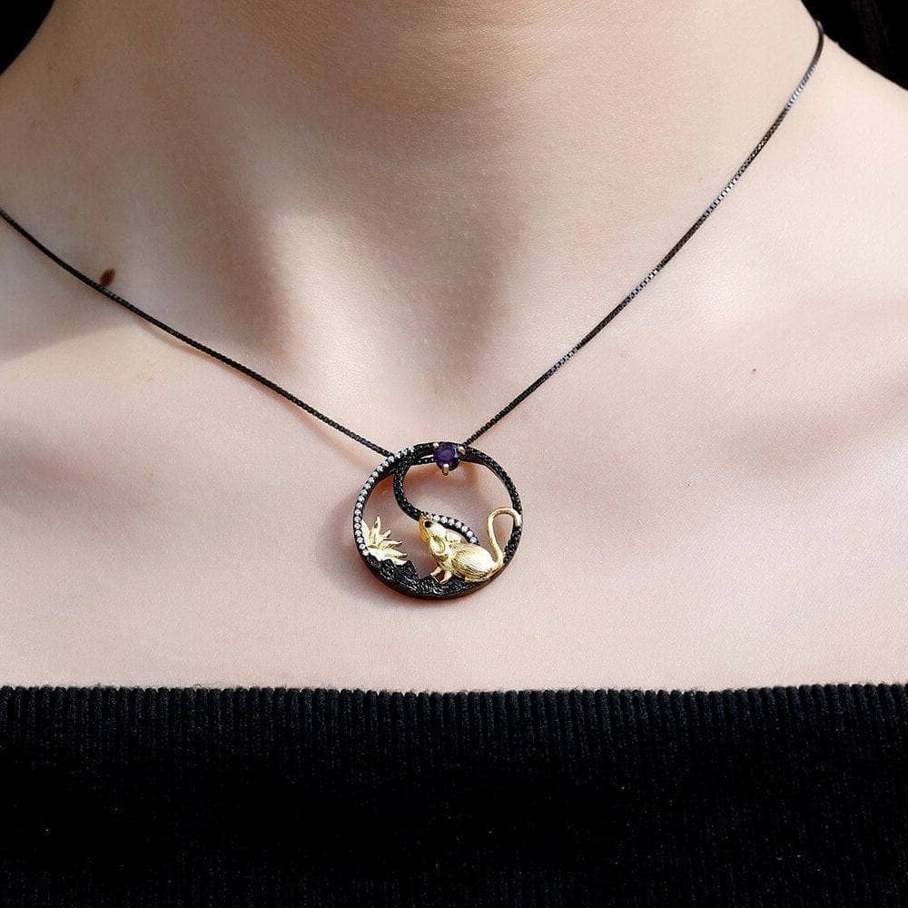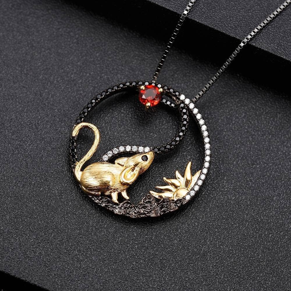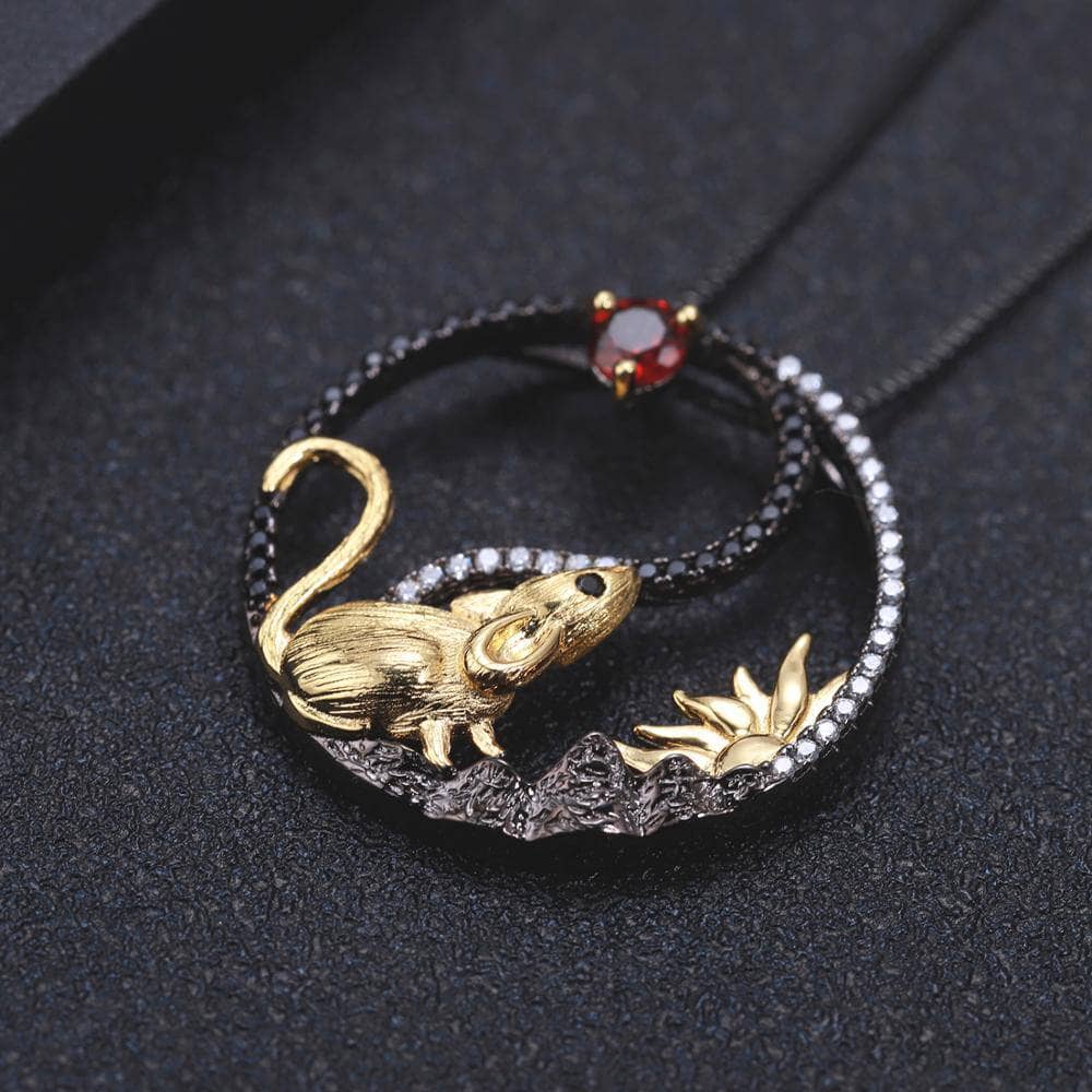 Year Of The Rat-Natural Garnet Handmade Rat Necklace