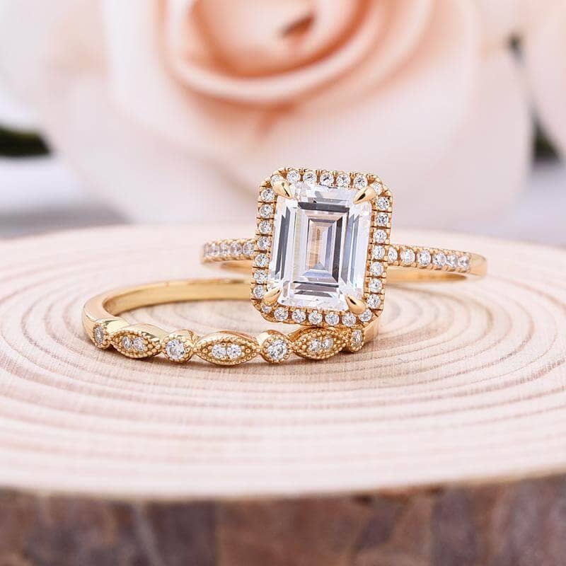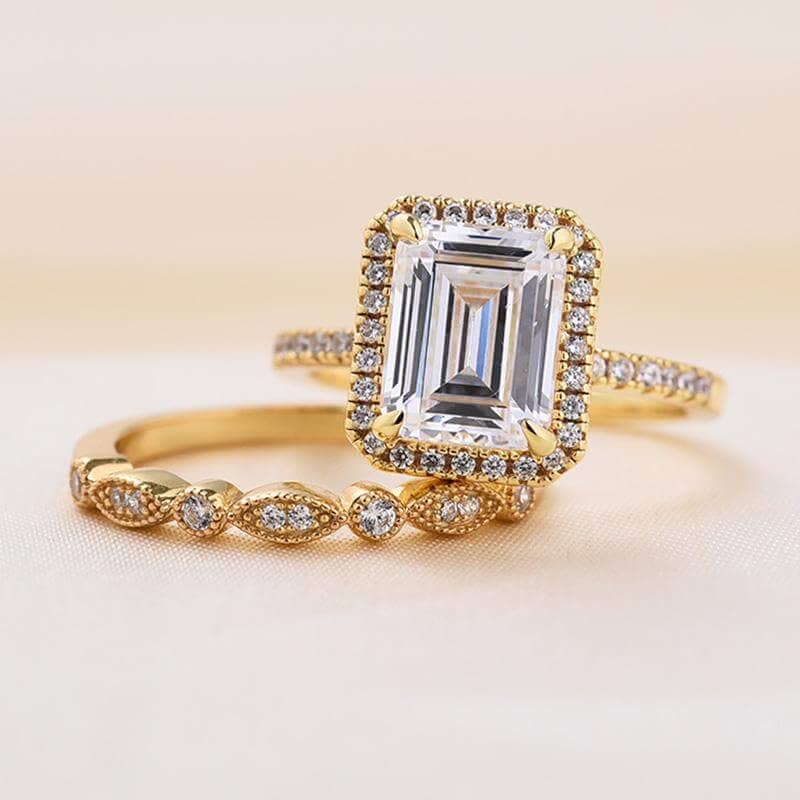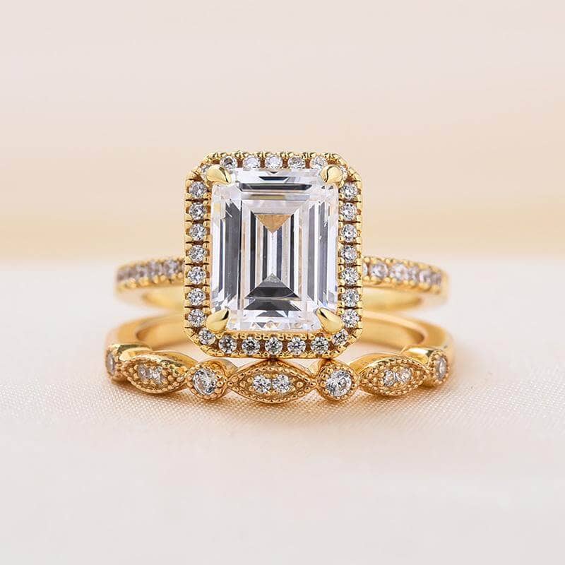 Yellow Gold 4.0 CT Emerald Cut Wedding Ring Set