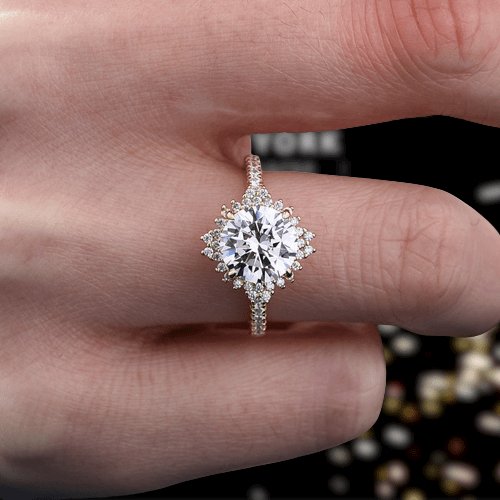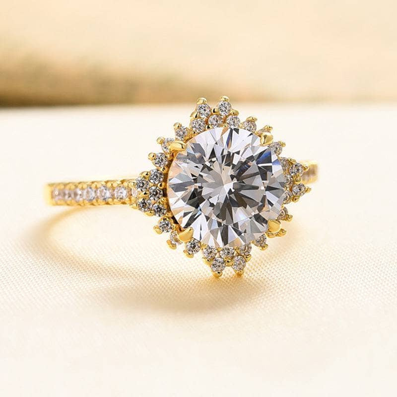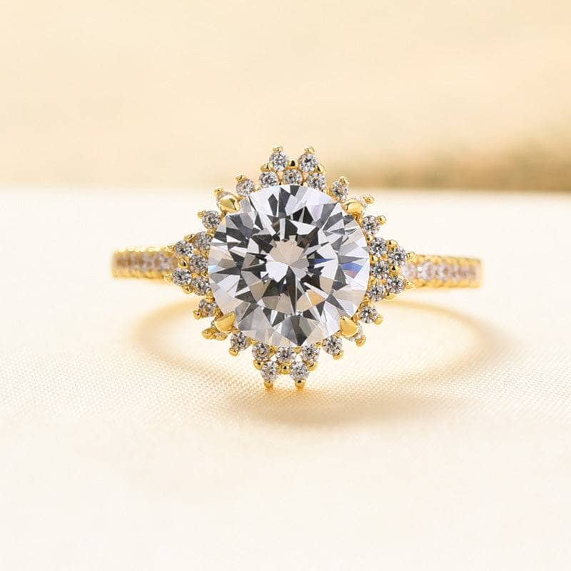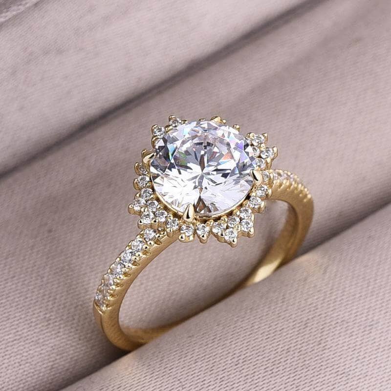 Yellow Gold Flower Halo Round Cut Engagement Ring