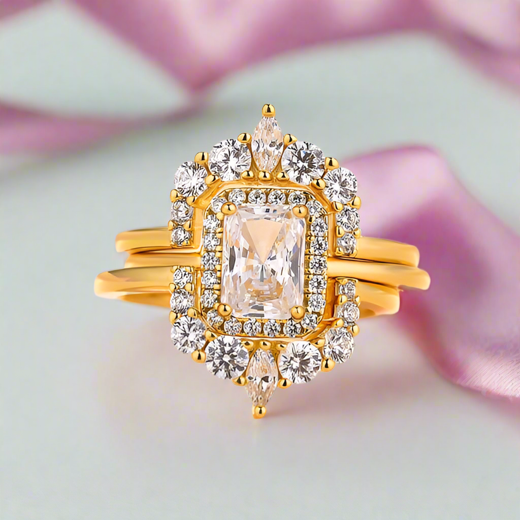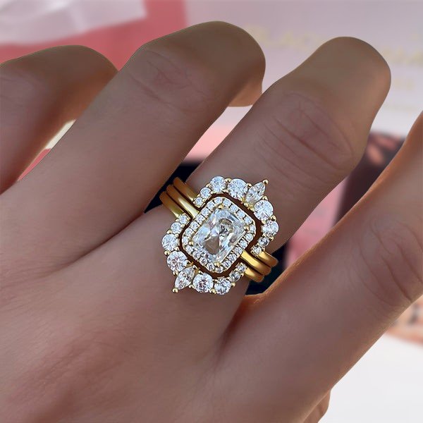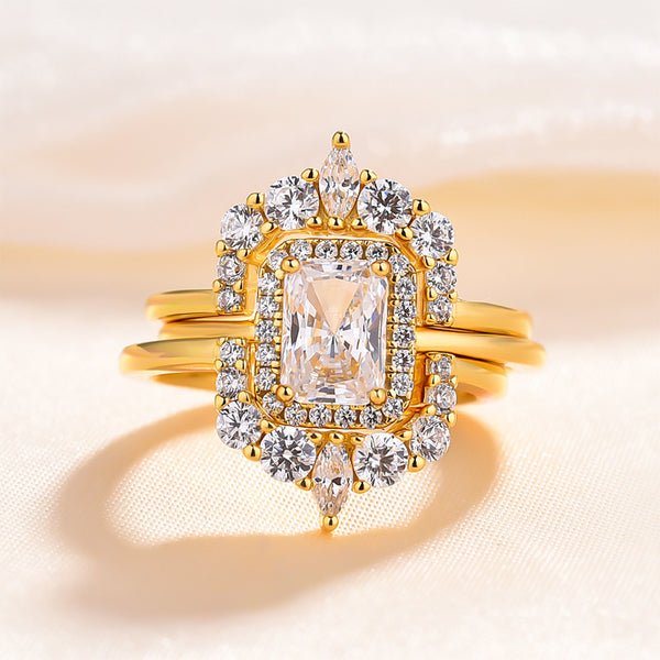 Yellow Gold Halo Radiant Cut 3PC Wedding Set